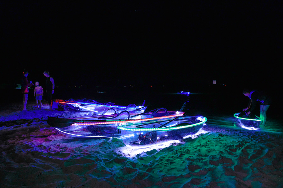 Showtime Kayaking offers an unforgettable kayaking experience that combines the thrill of exploration with the beauty of nature, all from the comfort of our high-quality, clear kayaks. Whether you’re an avid kayaker or looking for a new adventure, our night-time kayaking experience is sure to impress.