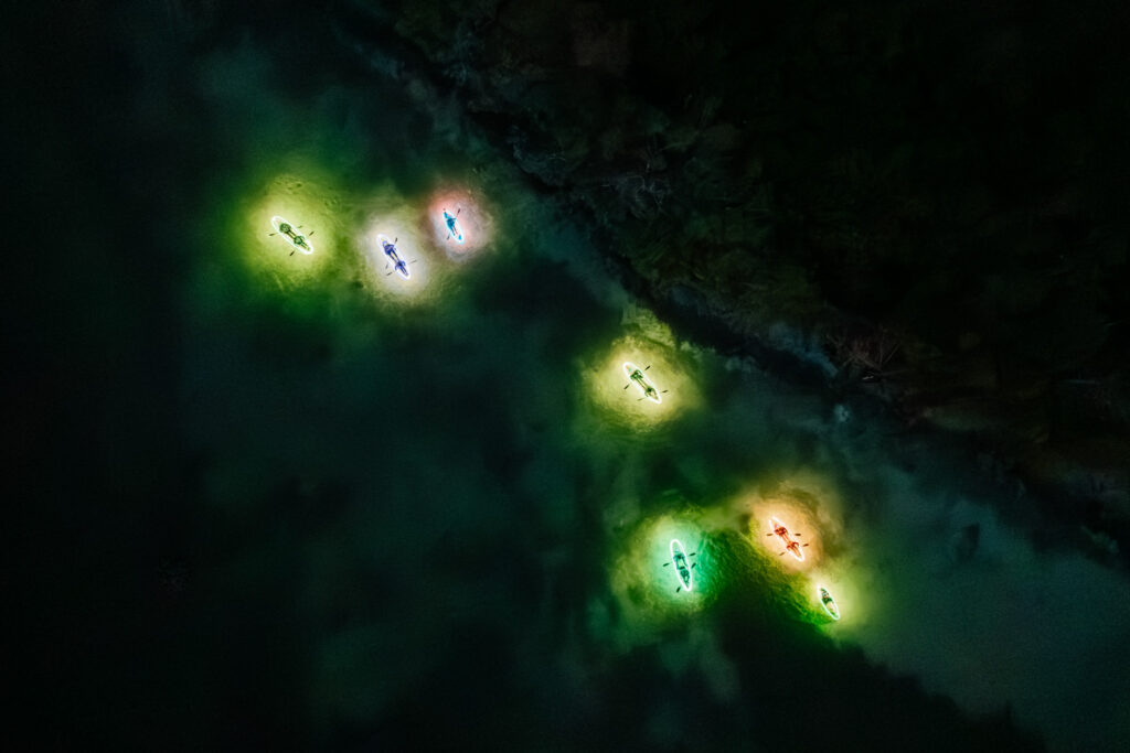 Showtime plays by the strictest safety rules back and front stage. Like any outdoor production, there can be a little drama involved, however small. Rest assured, the wide base on our kayaks make them extremely difficult to tip over and their lights mean you can avoid obstacles with ease. Our guides will make sure you don’t separate from your fellow adventurers and do everything possible to keep you safe.